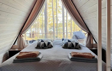 Mukavat, valmiiksi pedatut sängyt ja puhtaat lakanat takaavat teille hyvän yöunen keskellä luontoa.